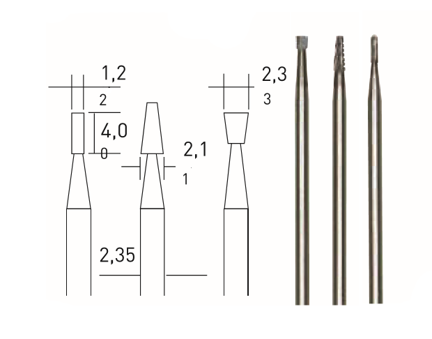 Saplar 3 veya 2.35 çapında . Bu uçlar için de MICROMOT çelik penslerin kullanılmasını tavsiye ediyoruz.